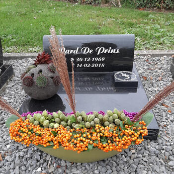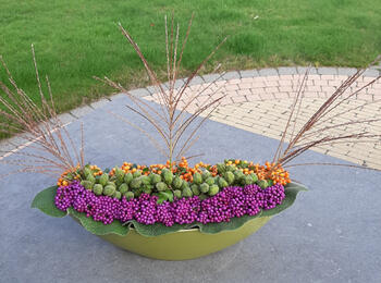 Pluimen van tijgergras of prachtriet (facultatief), 1 bootvormige vaas, natte oasis