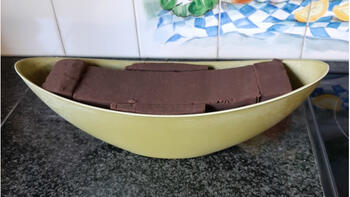 De bovenkant bedekken met groene bladeren die je vastprikt met rammen.