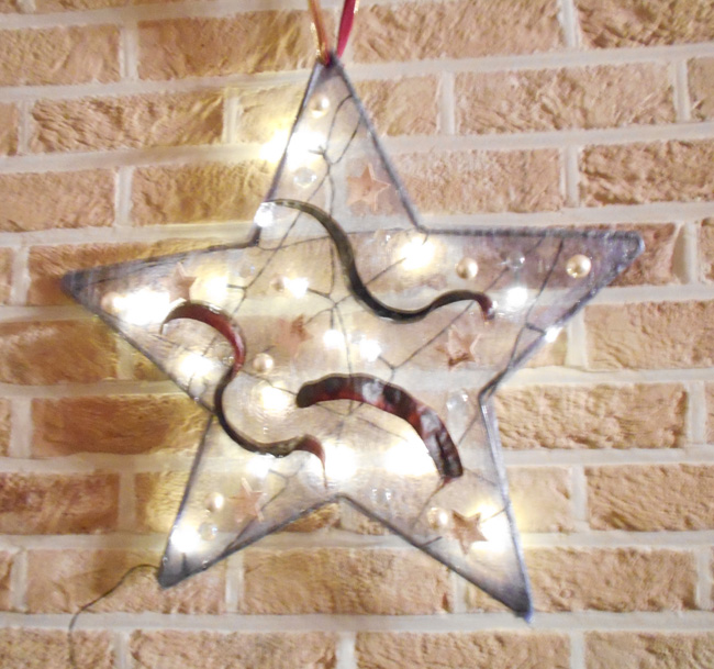 Bovenaan een touw of lint bevestigen om de ster op te hangen.