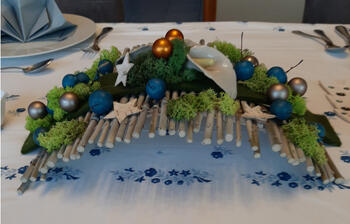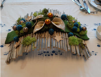 Kerst tafelstuk met matje van stokjes