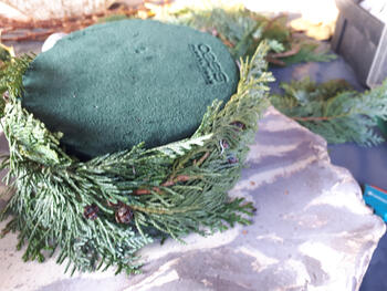 Een onderste boor maken van hulst en groene skimmia.