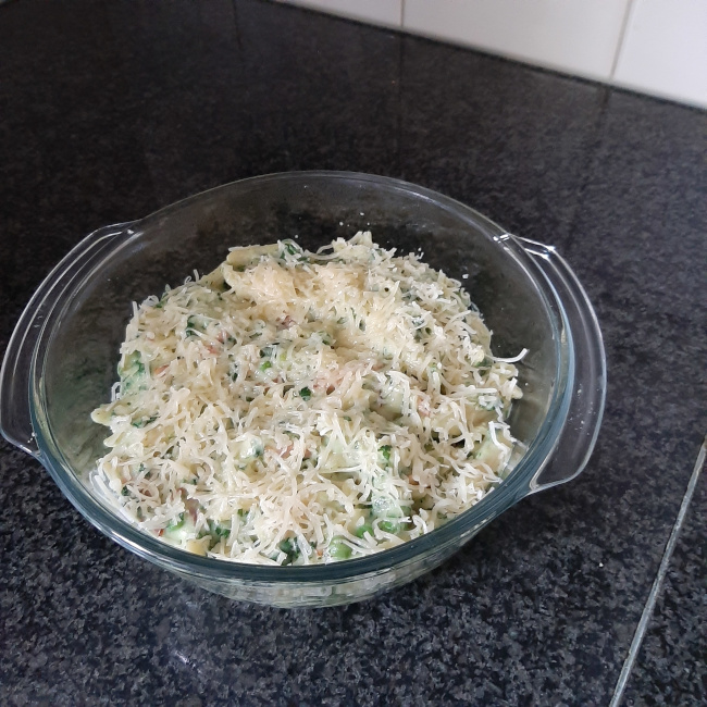 Ovenschotel, 20 g gemalen kaas voor de afwerking