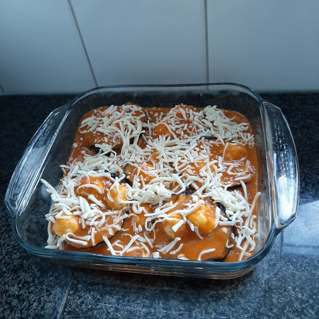 120 g mozzarella, 50 g geraspte Parmezaan, grillpan, ovenschotel