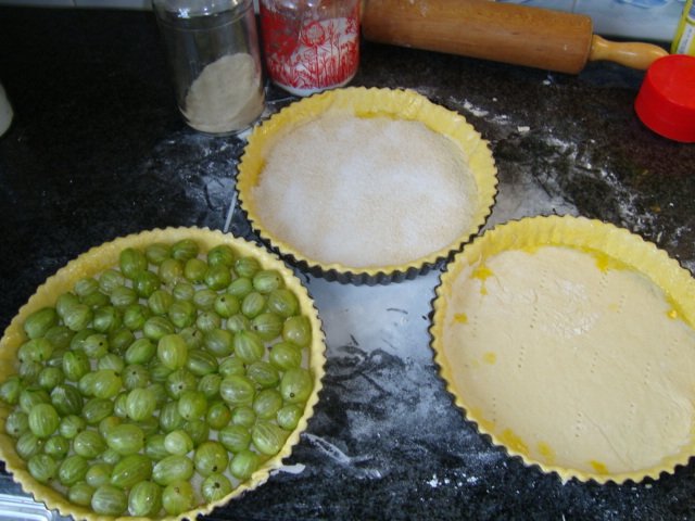 - Vulling: 2 el paneermeel, 1/2 kg kruisbessen (=stekelbessen, kroezelen, kroenselen), 3 el suiker