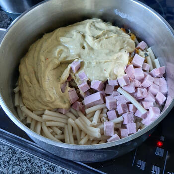 200 g gekookte ham in blokjes (facultatief)