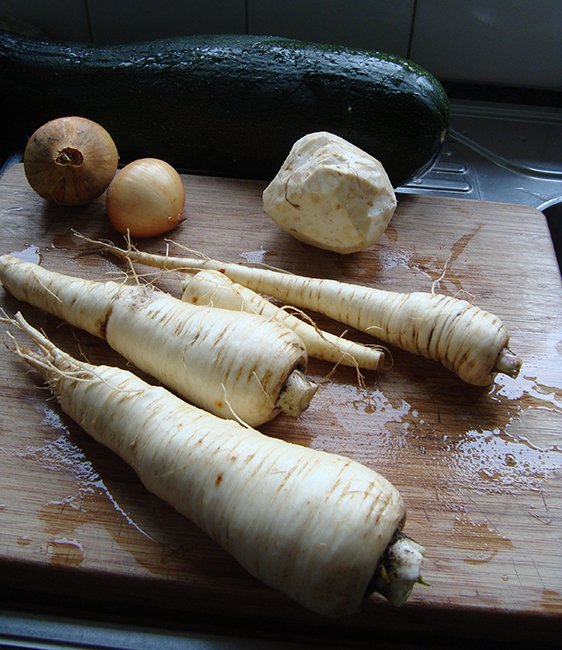 Velouté van pastinaak, knolselderij en courgette