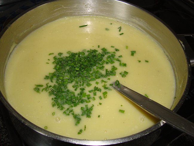 - De bieslook fijn snijden.