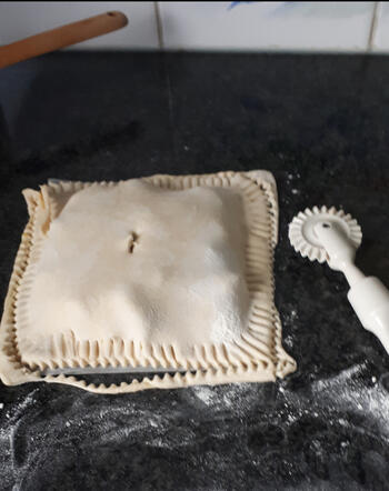 Bakpapier, 8 plakjes bladerdeeg 10/10 cm, ½ ei