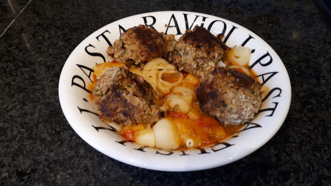 Vegetarische balletjes met tomatensaus en pasta